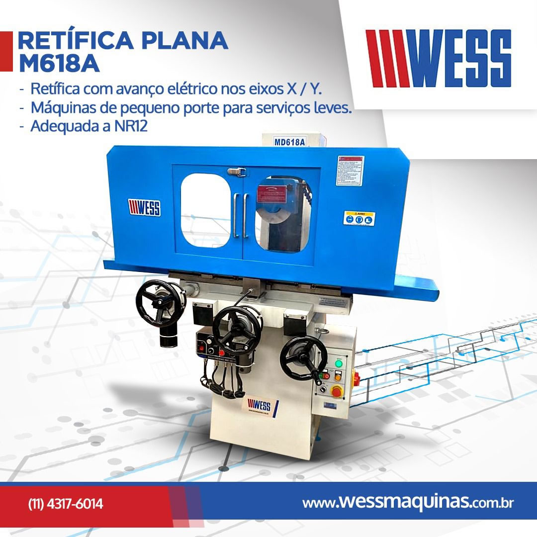 • Retifica Plana possui construção solida com absolvição de vibração.