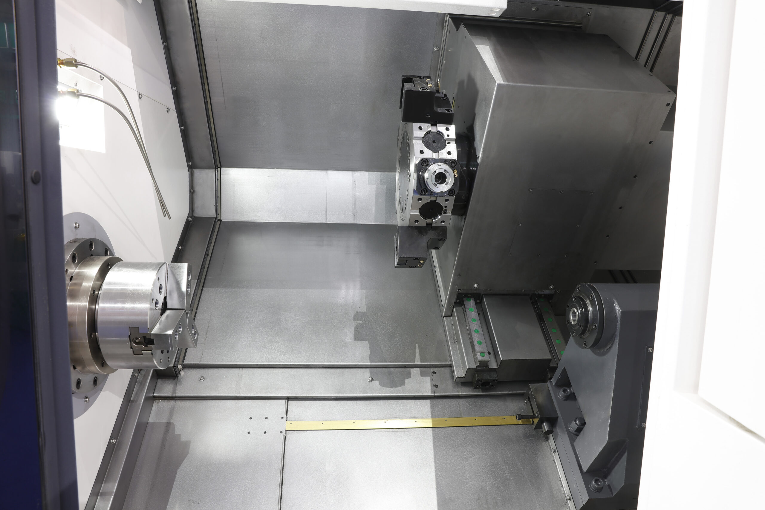 - Centro de Torneamento high class de 4 eixos capaz de manusear de forma flexível várias peças de trabalho.