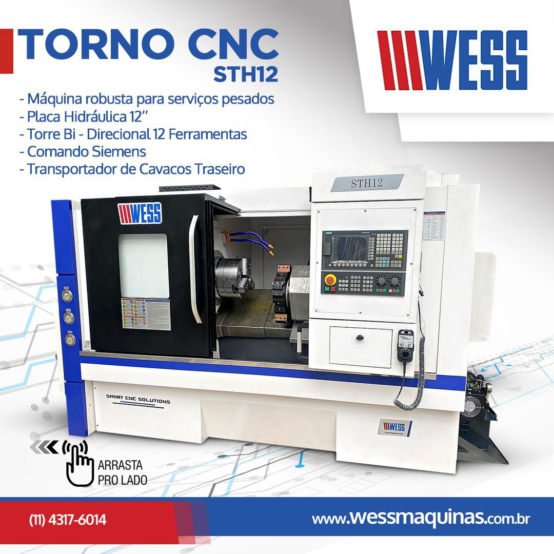 • Torno CNC STH12 fabricado em monoblock de liga Meehanite de 1º linha.