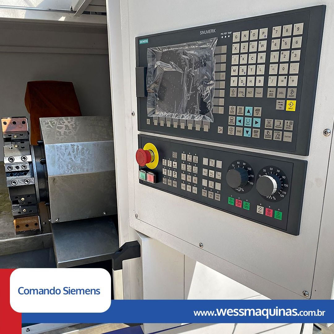 • Torno CNC de barramento inclinado possui Sistema CNC Siemens 808D .