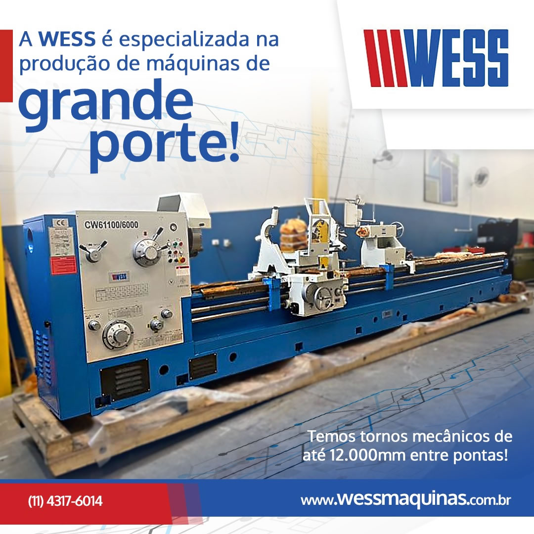 - Torno mecânico de grande porte possui estrutura de ferro fundido em monoblock oferecendo maior robustez.